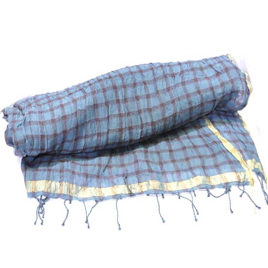 The silk scarf is hand-woven with skilled craftsmanship. The checkered patterns and fringes add a stylish touch. This scarf is a great accessory to flatter your outfit.