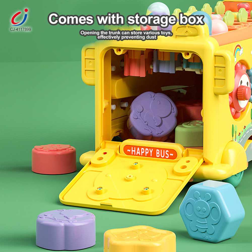 Chengji early educational montessori multifunctional simulated driving musical sound shape sorting baby bus car