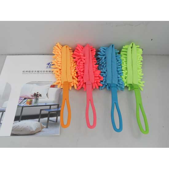 The cleaning duster here is made of the chenille material. The fluffy cleaning head can easily sneak into narrow gaps between furniture. The plastic handle offers additional convenience in cleaning.