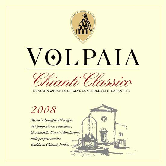 Showcased is a bottle of red wine that is made from a selection of Sangiovese grapes which are harvested in Volpaia. The blend with merlot and syrah gives this wine a pleasant and velvety sensation with a strong aroma of cherry. This ruby red wine is the perfect enhancement for a steak dinner.