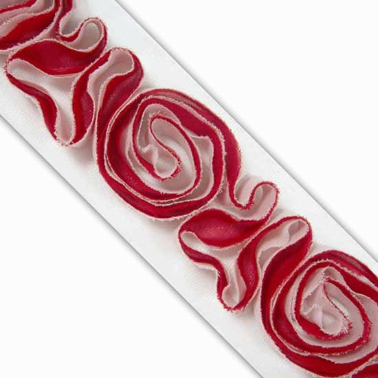 This deluxe chiffon tape comes with graceful crafted roses, showcasing a feminine and elegant style. Crisp and luxurious, this tape is ideal for decorating spring and summer fashion pieces. The chiffon tape is available in different lengths.