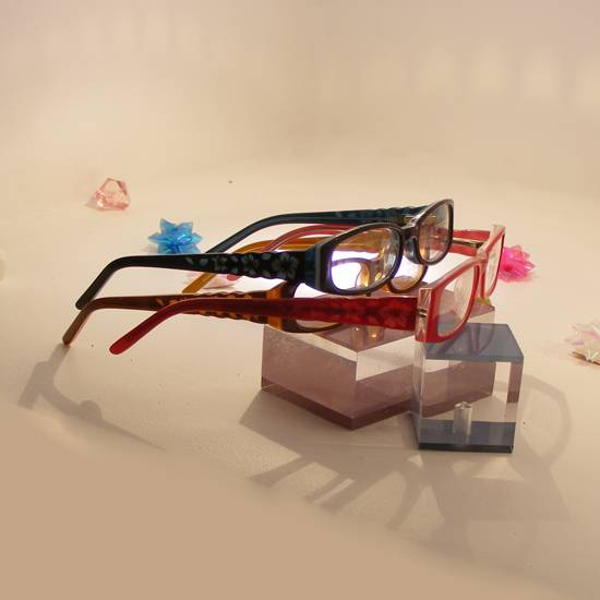 These are pairs of children's reading glasses made with coloured and patterned acetate spectacle frames. The reading glasses are made with urlabe lens.