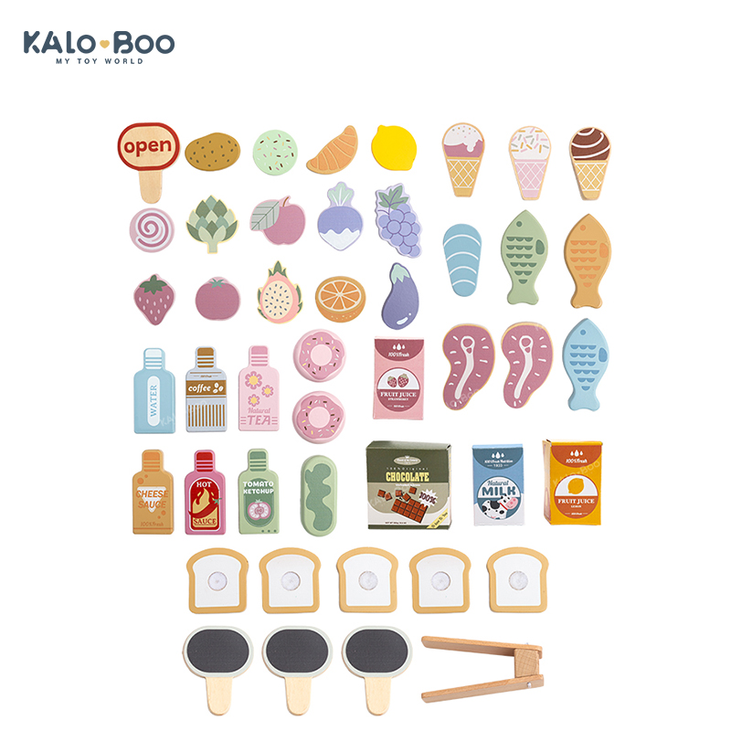 Watch as your child practices counting with wooden coins, learns about food groups while arranging fruits and vegetables, and develops social skills through role-playing as cashiers, shoppers, or store managers. The open-ended design encourages sorting, organizing, and imaginative scenarios that grow with your little one.