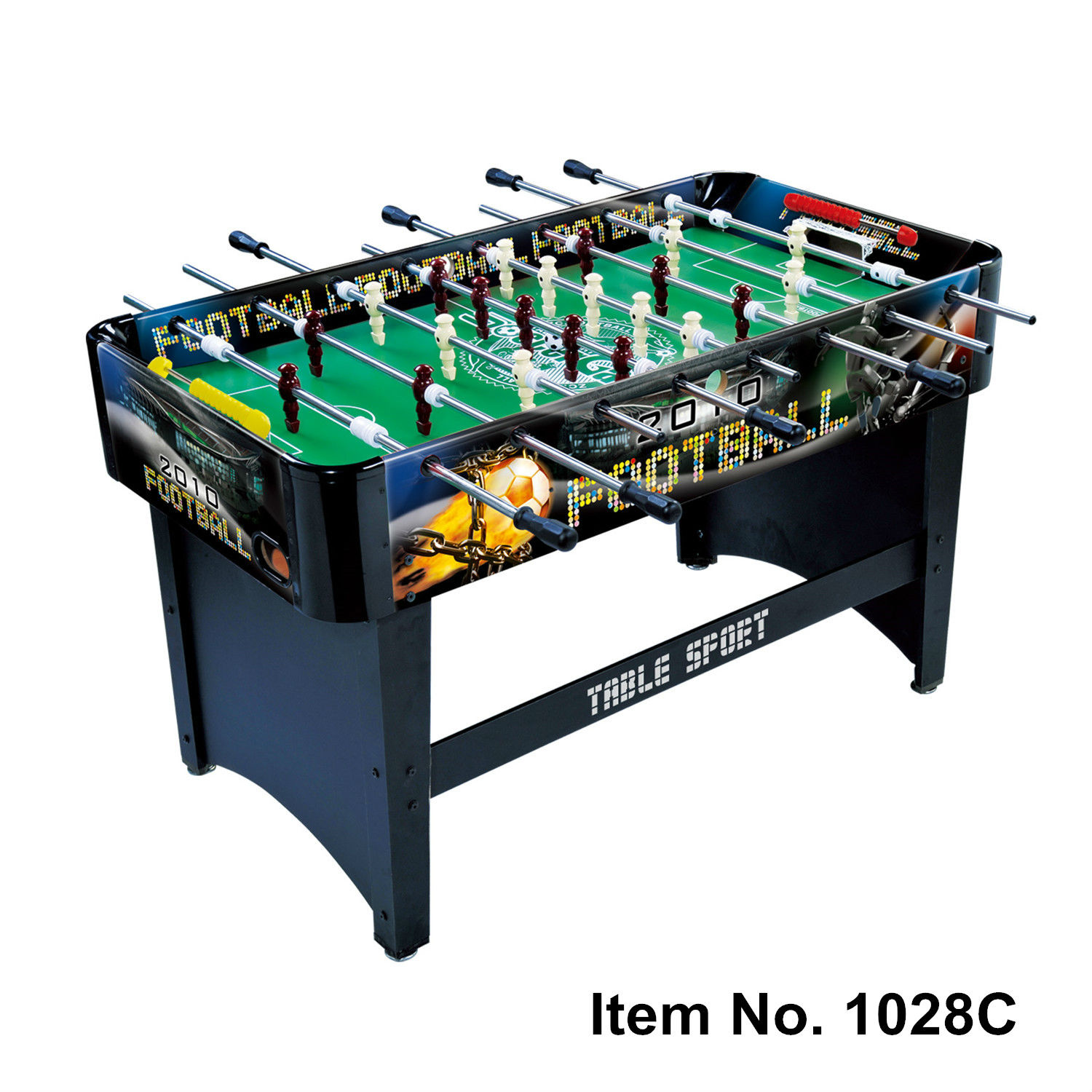 Get ready for an action-packed football match over the table with this wooden soccer table. Get set on the knobs and prepare to kick off your killing shot once the ball lands on the pitch. Just invite all your buddies to your house and spend the whole afternoon twisting the handles for rounds and rounds of fun-fueled competitions.