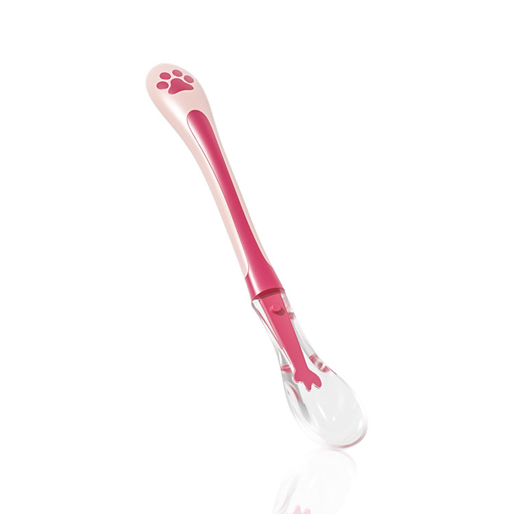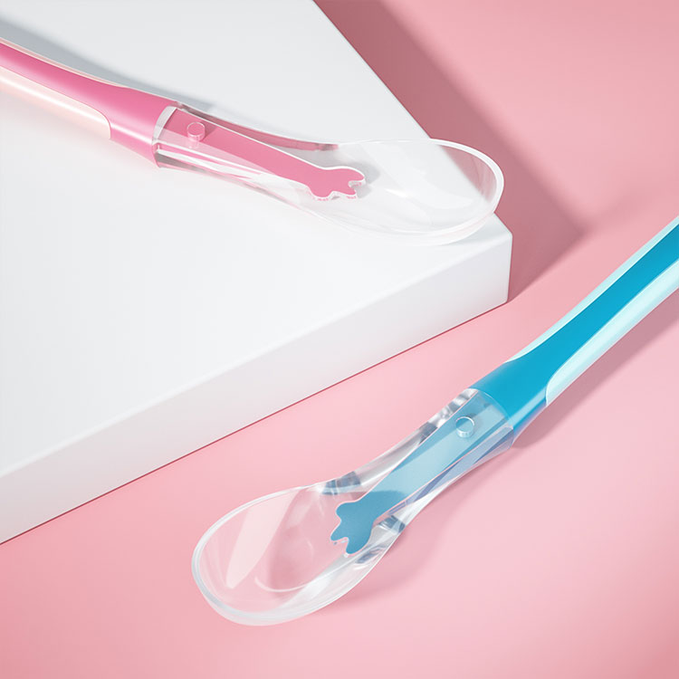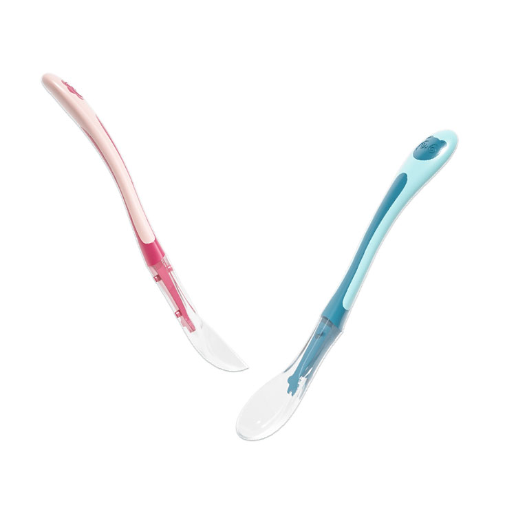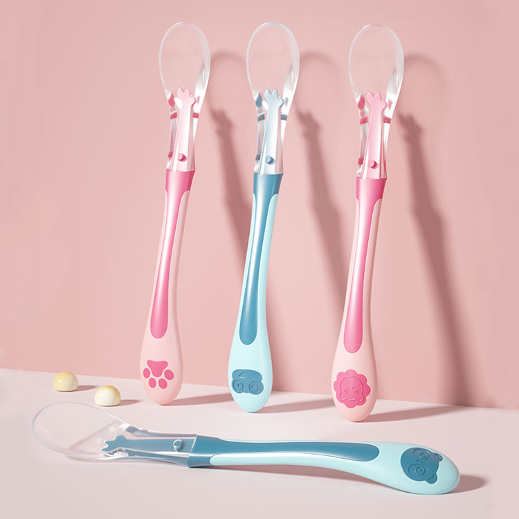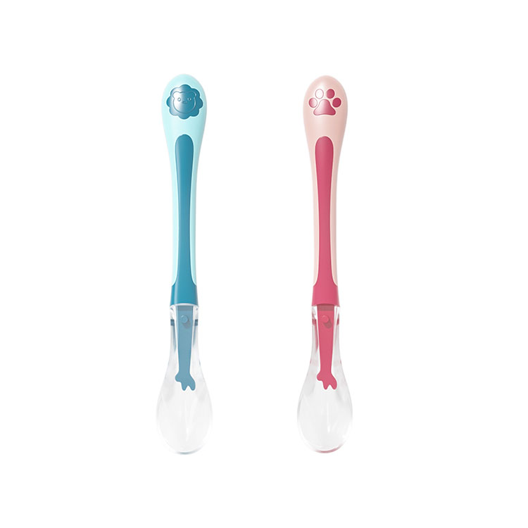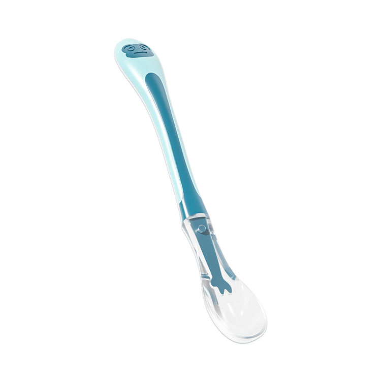 This is a silicone two-color silicone spoon specially customized for babies aged 0-2 years old. It is made of food-grade silicone material, environmentally friendly and safe, and does not contain bis-phenol A. It is soft and cares for baby's gums and mouth, making it safer to use.