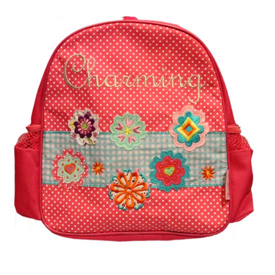 This dotted children's backpack is embroidered with multi-color flower motifs. Made of quality cotton, the backpack boasts durable yet lightweight construction. The lovely and functional backpack is ideal for school, camping, travel, etc.