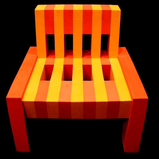 This children's chair features large splayed legs for enhanced safety. The fancy stripe patterns come in bright colors with fun rectangular hollows. This awesome chair is attractive enough to make your children sit still.