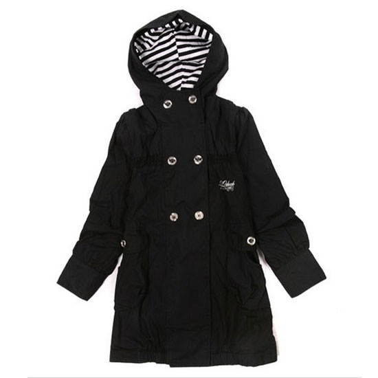 This outlined coat is specifically designed for children. It comes with a hood with striped lining and metallic studs for added style. This hooded children's coat is suitable for autumn and winter months.
