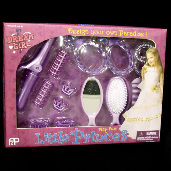 This featured set of cosmetic products is designed especially for your little princess. The set includes a handbag, a pair of earrings, a ring, a tiara, a necklace and a comb. Bring your little girl some princess fun with this versatile set.