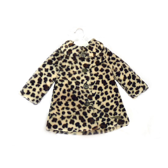 This is a children's jacket with a fashionable and eye-catching design. It is made of quality imitation fur with a soft and smooth texture. The allover leopard patterns add a touch of style to this design.