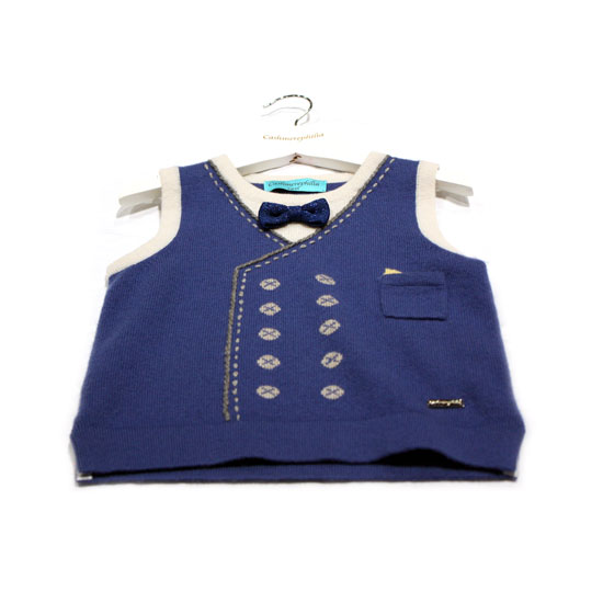 This children's sweater vest features a bow tie and imitation buttons. The high-quality vest delivers satisfying wearing comfort. It is a great addition to your kid's wardrobe.
