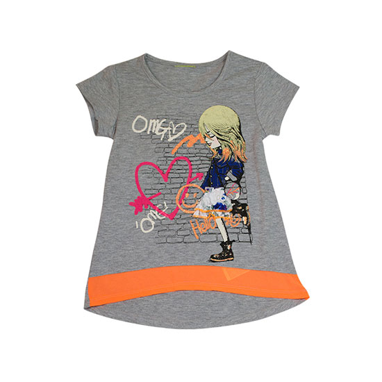 This is a children’s T-shirt that is accented with colorful prints on the front. It is designed with a classic round neckline, short sleeves and a loose-fit body. This stylish T-shirt is easy to clean and maintain.