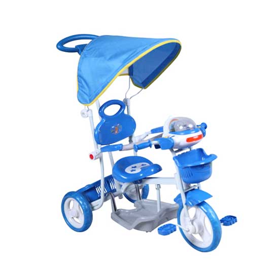 This is a children’s tricycle that comes in bright colors for an eye-catching look. It is sturdily constructed for a long service life. This multifunctional tricycle with a push handle can be used as a baby stroller.
