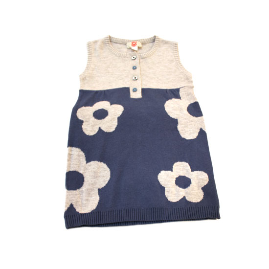 This is a children's vest in gray and dark blue. It is designed with flower patterns for added style. The full cotton material gives your child enhanced comfort.