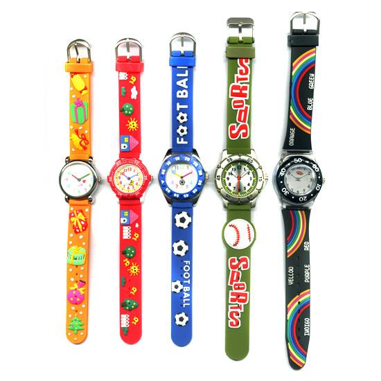 These are children's watches which are made with metal alloy watch casings. The watches are decorated colourfully and is equipped with PVC watch bands.