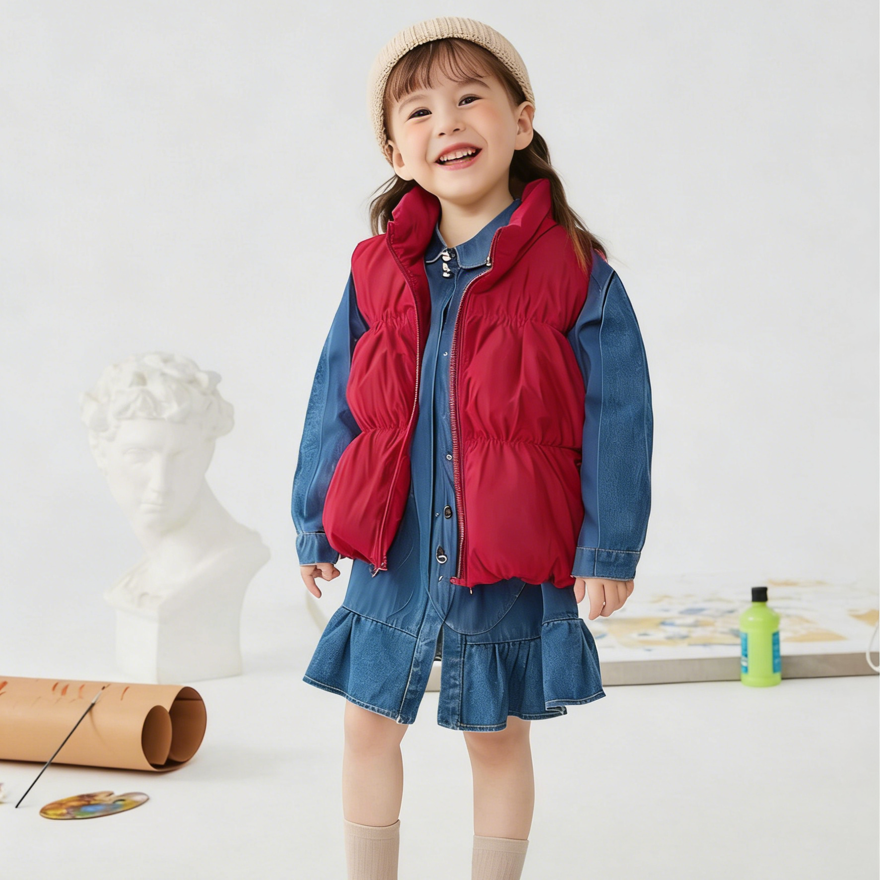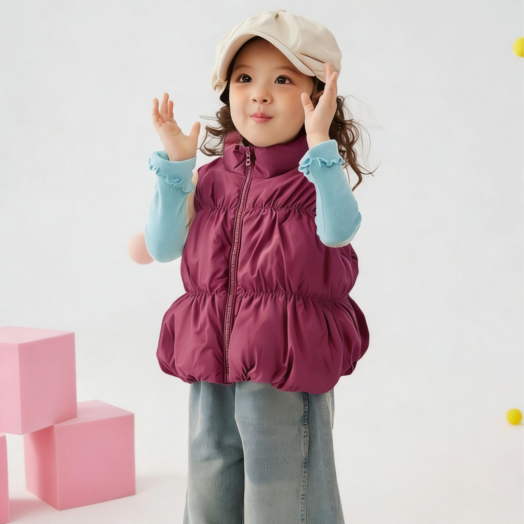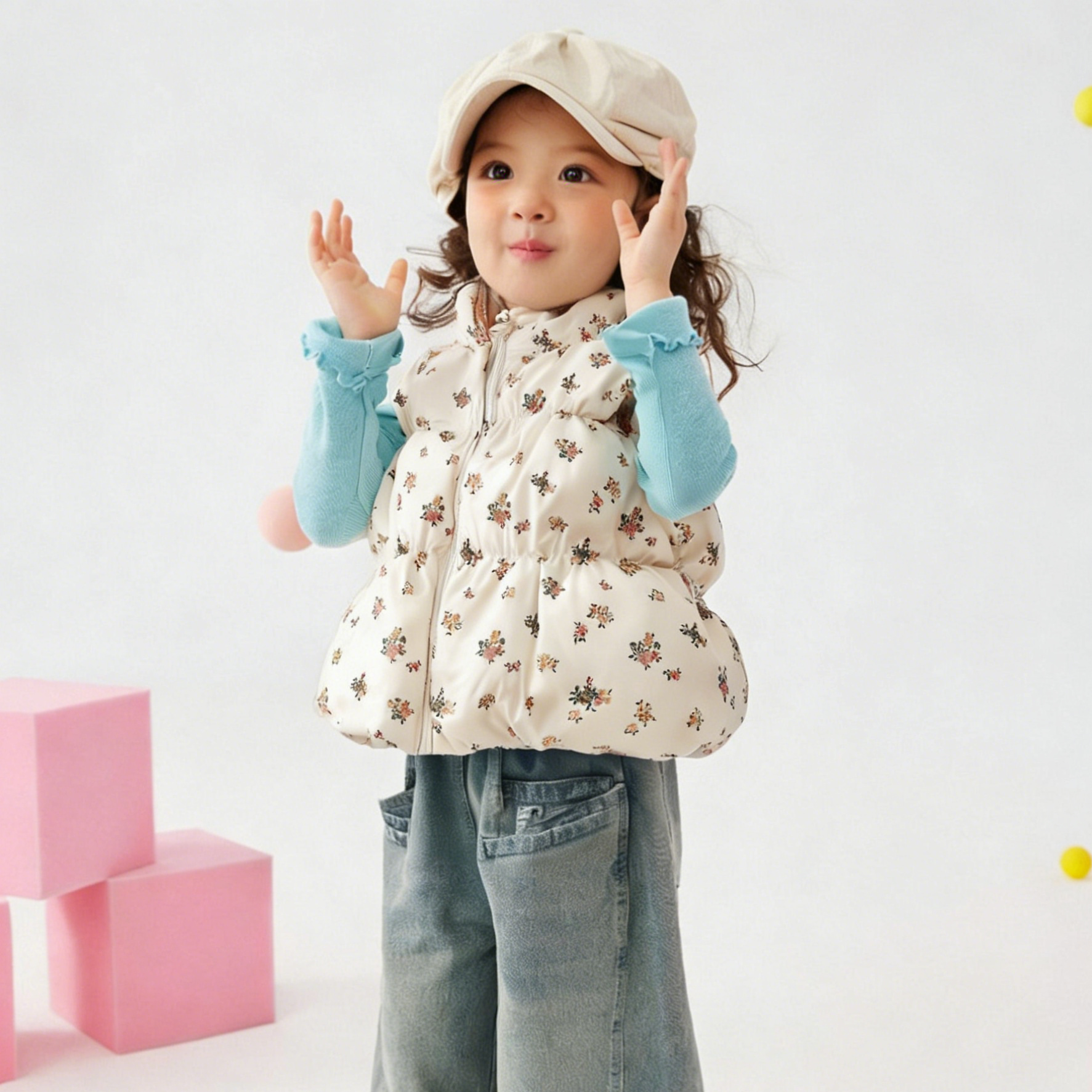 NO1: Special digital printing, vibrant pattern designs, fluffy outer vest construction