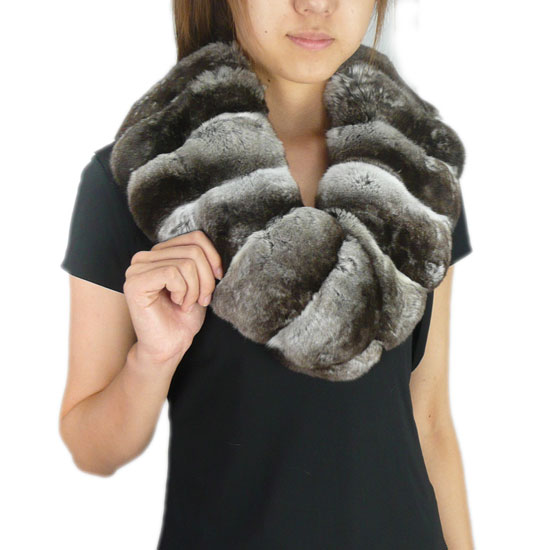 Presented here is a Chinchilla scarf in a classy design. The fluffy construction showcases a sense of elegance. This infinity scarf is easy to mix and match.