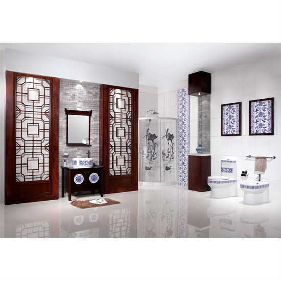 Coming in a Chinese design, this bathroom set will infuse your bathroom with a taste of the East. All its items embody great workmanship. The sink, cabinet and toilet are adorned with floral patterns in the style of blue and white porcelain, while the screen door of the shower cabin is adorned with floral patterns. The set shows a marriage of modern bathroom accessories and traditional Chinese aesthetics.