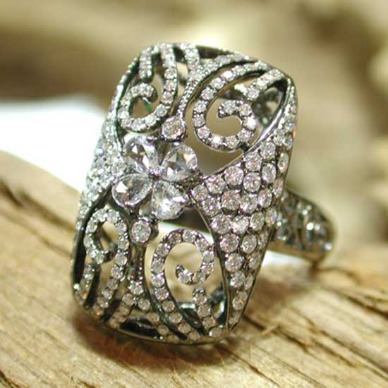 This alluring ring features the design of a Chinese opera mask with sparkling paved diamonds. The rose-cut white diamonds exude a distinctive vintage feel. It makes a great accessory for any outfit at any occasion.