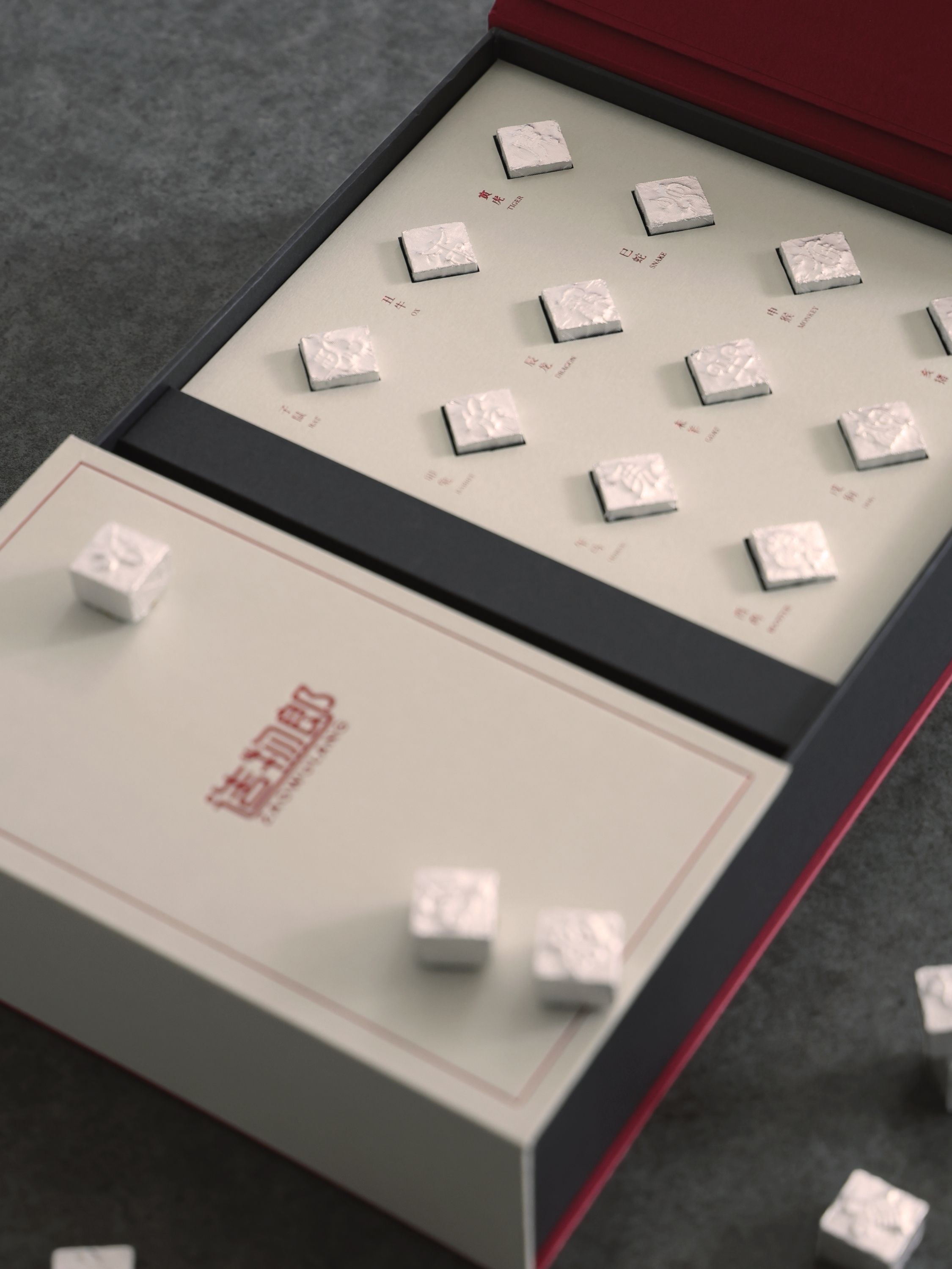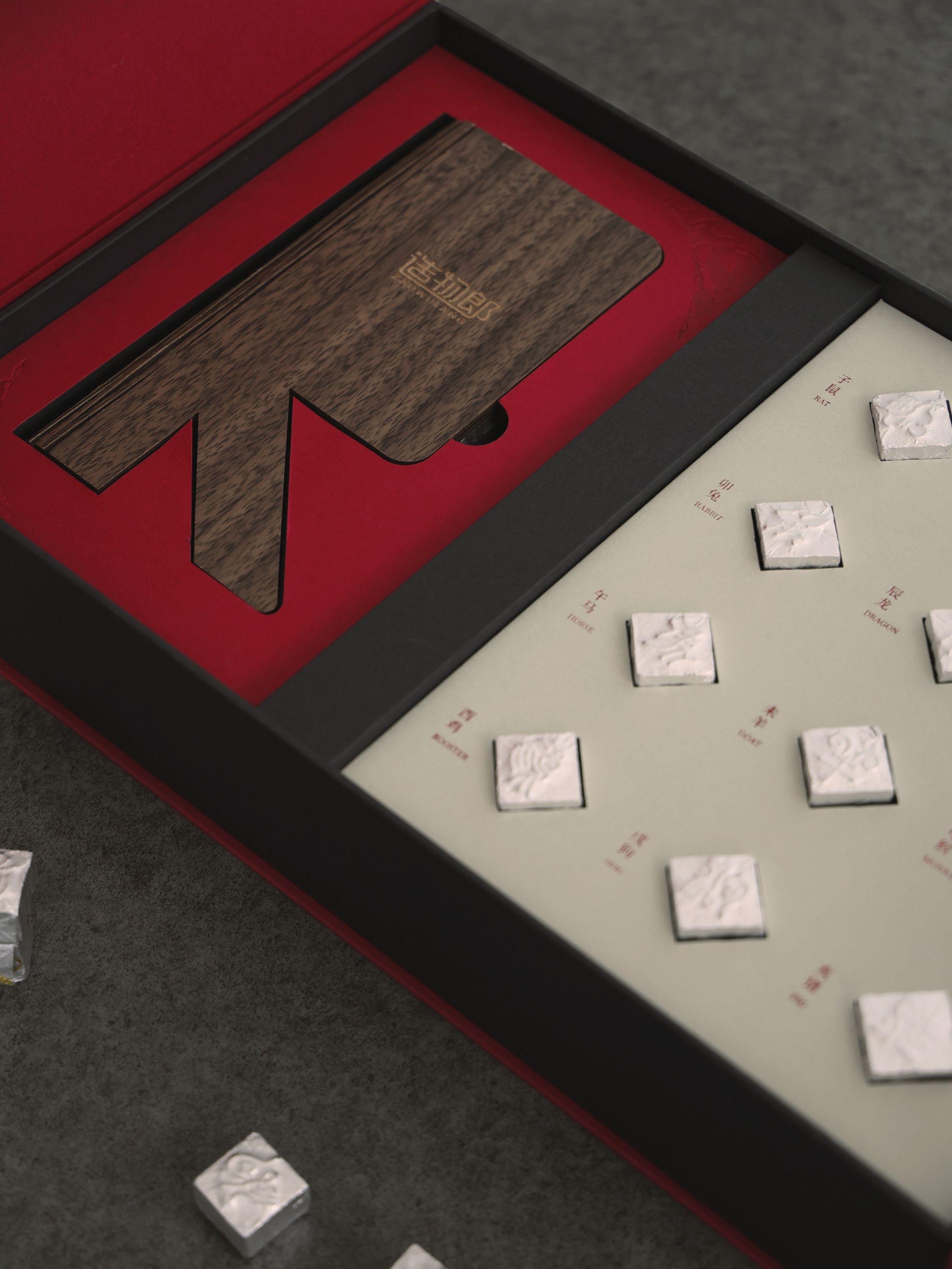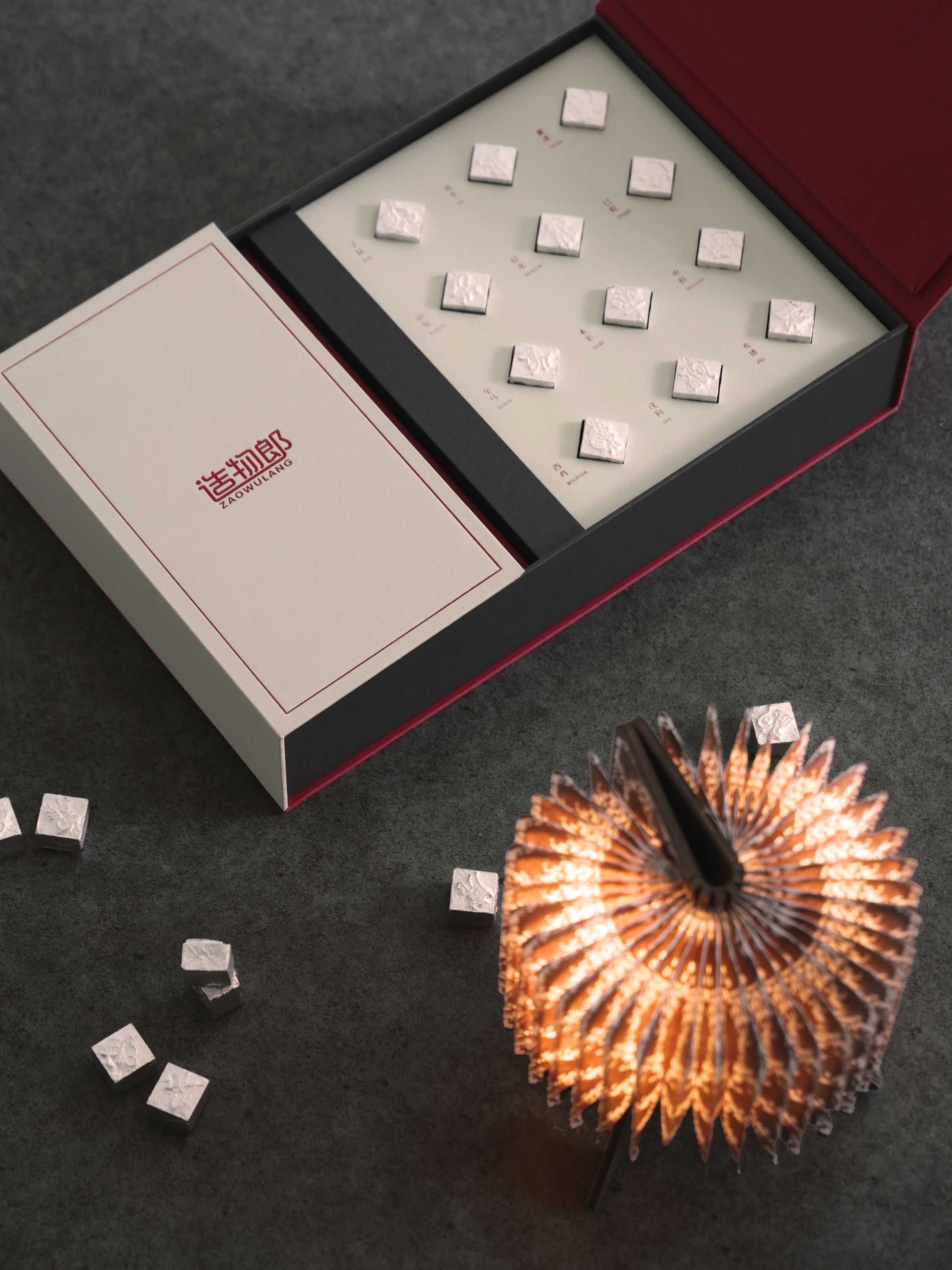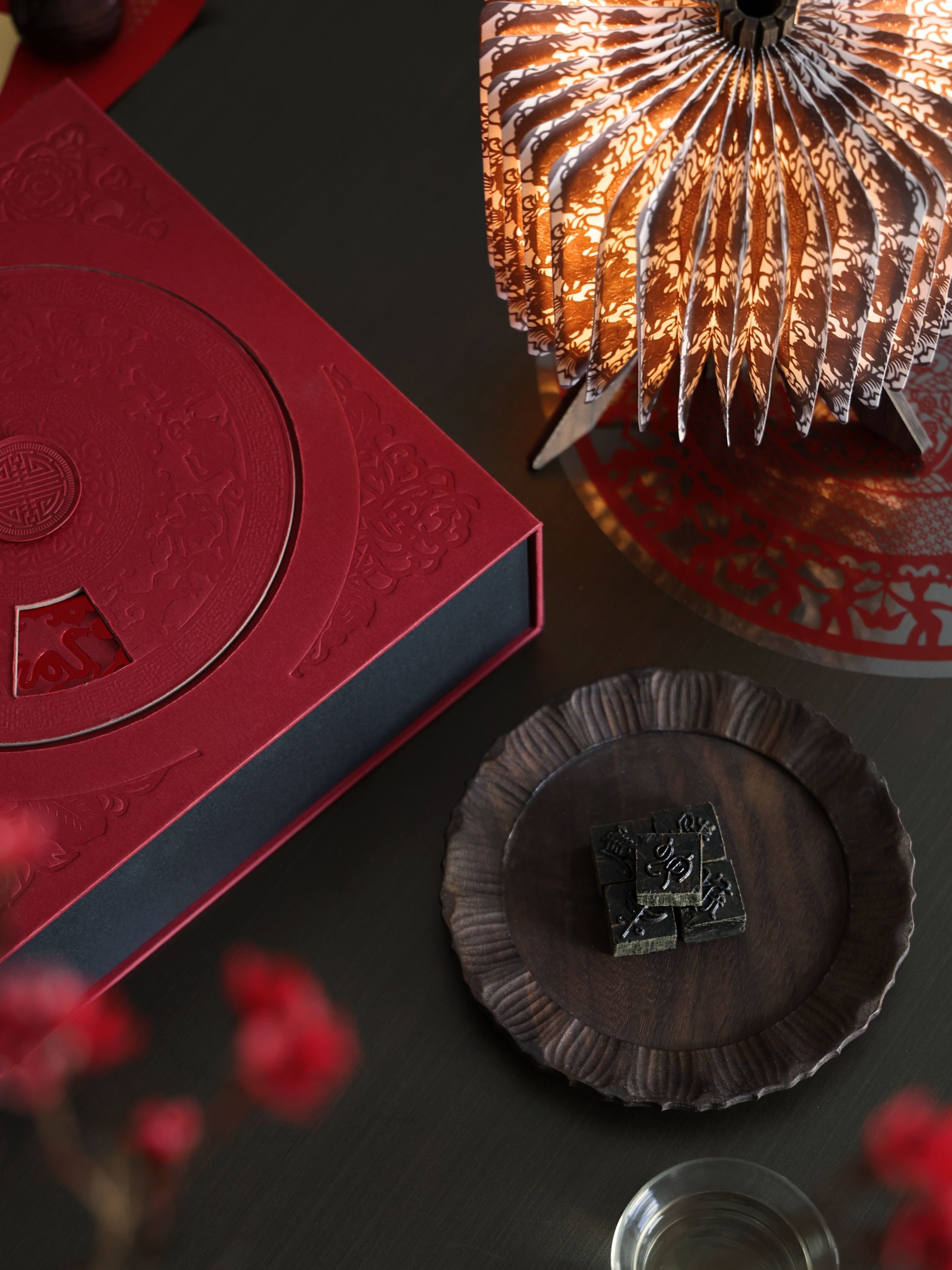 This elegant tea gift set incorporates elements from the Yueqing Fine Grain Engraved Paper-cutting masterpiece The Chinese Zodiac, an intangible cultural heritage. As the gift box gently rotates, the twelve zodiac animals appear like lively silhouettes, unfolding a dynamic scroll of traditional folklore. The compressed Chinese character tea cakes and the hollowed dragon-pattern tea cups reflect exquisite craftsmanship, embodying the essence of Eastern charm.