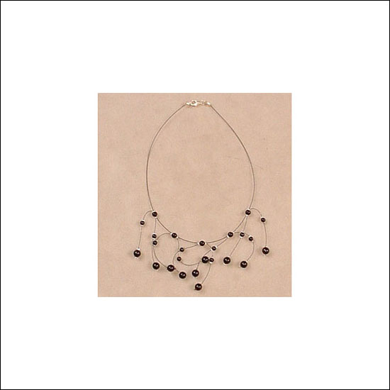 Nylon string choker with beads supported by caps silver-plated.