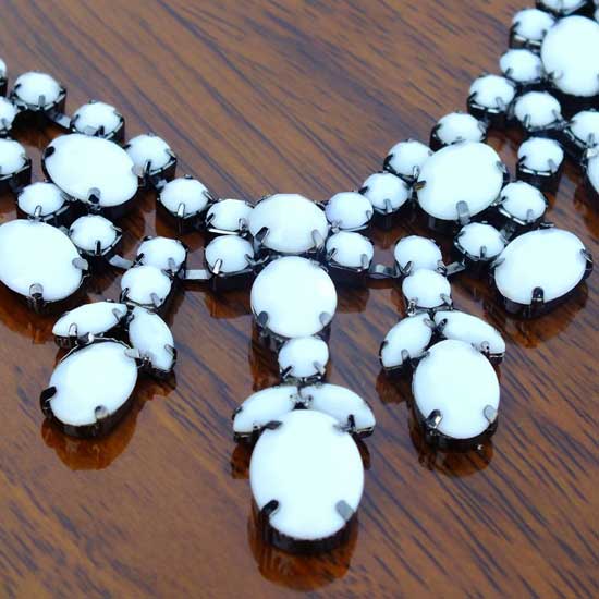 Displayed is a choker necklace featuring resin and acrylic as decorative stones. Designed with a fashionable touch, this choker necklace shows volume and confidence. This beautiful piece is suitable for anniversaries, engagements and other grand occasions.