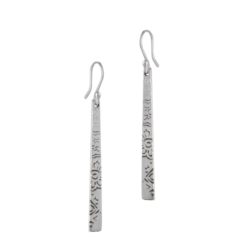 Design: Elongated earrings with artisan engraving