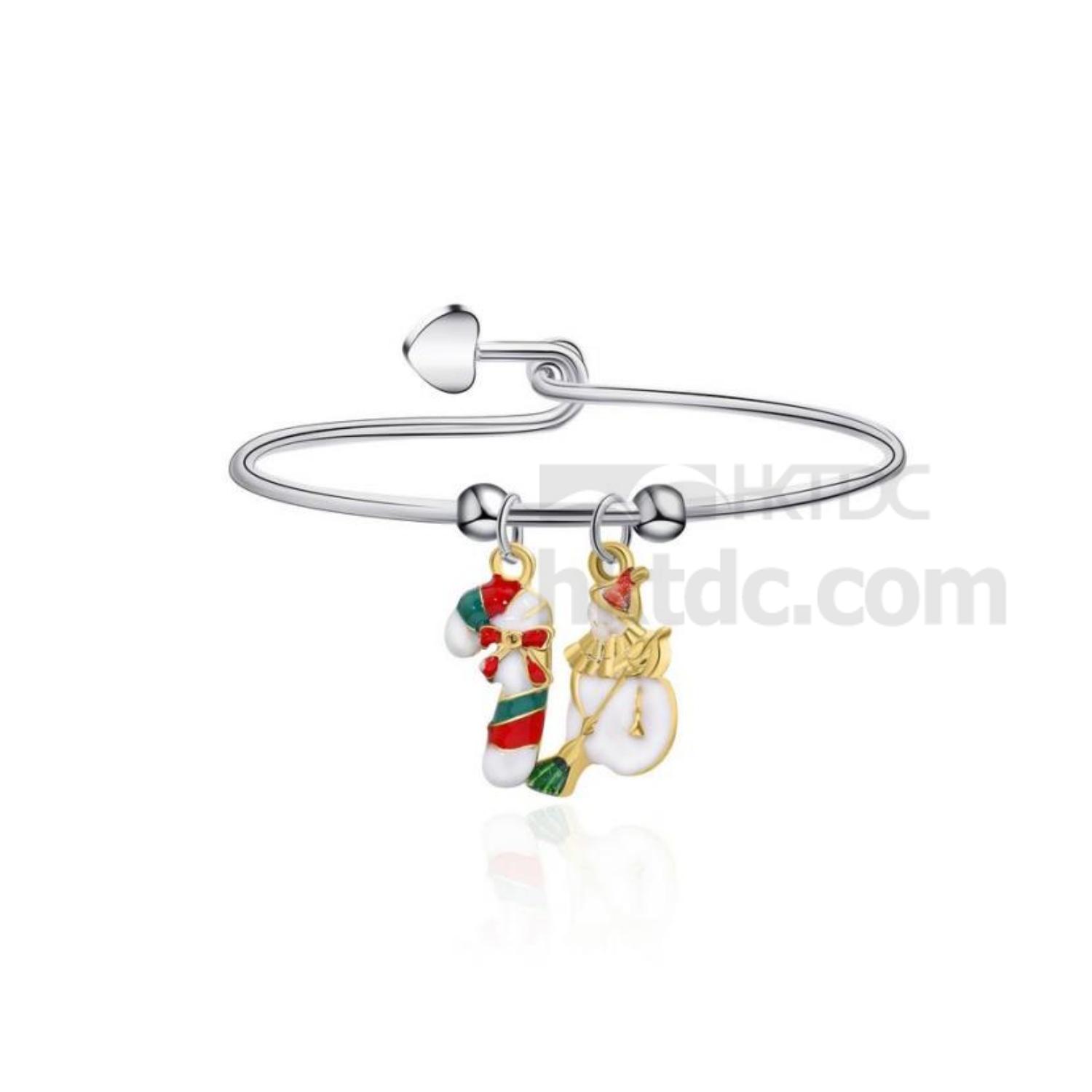This is a piece of delicate bangle highlighted by the enamel-painted candy stick and snowman drops to match the festive season.