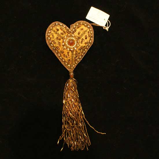 The Christmas decoration flaunts a dangling heart-shaped handicraft with an antique design. It comes with a tassel finish for a whimsical touch. The intricate embellishments make it a delicate decorative piece to your home decor.