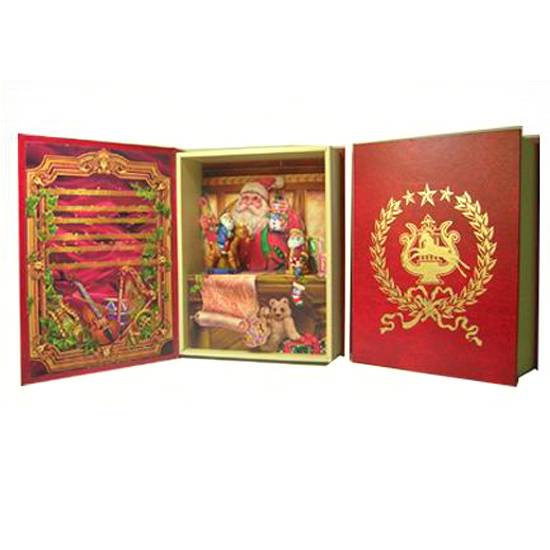 This is a wooden music box with Christmas motif. It is in typical red Christmas tone with small amount of gold color to enhance the look. Colorful and delicate poly figures is the main feature of this box.