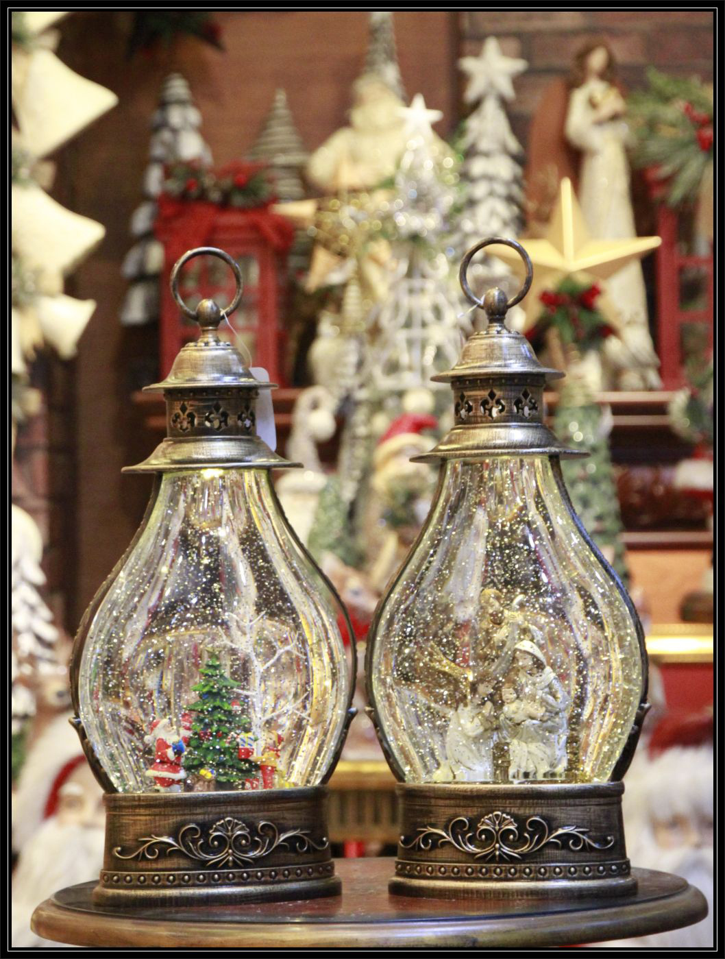 Christmas Nativity Lighted Water Globe Lantern 14"H Snow Globe w/Swirling Glitter B/O