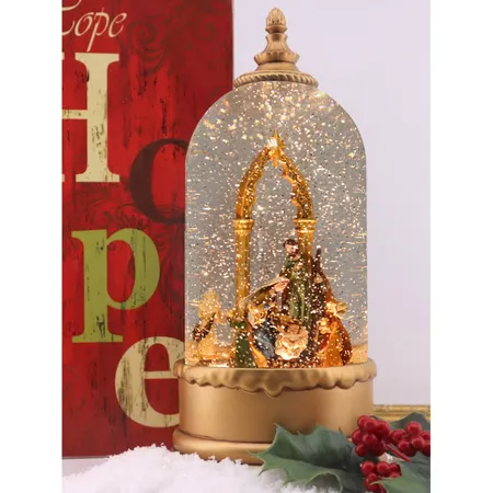 Christmas Nativity Lighted Water Globe Table Piece 10.5"H Musical Snow Globe with Swirling glitter Battery Operated & Timer