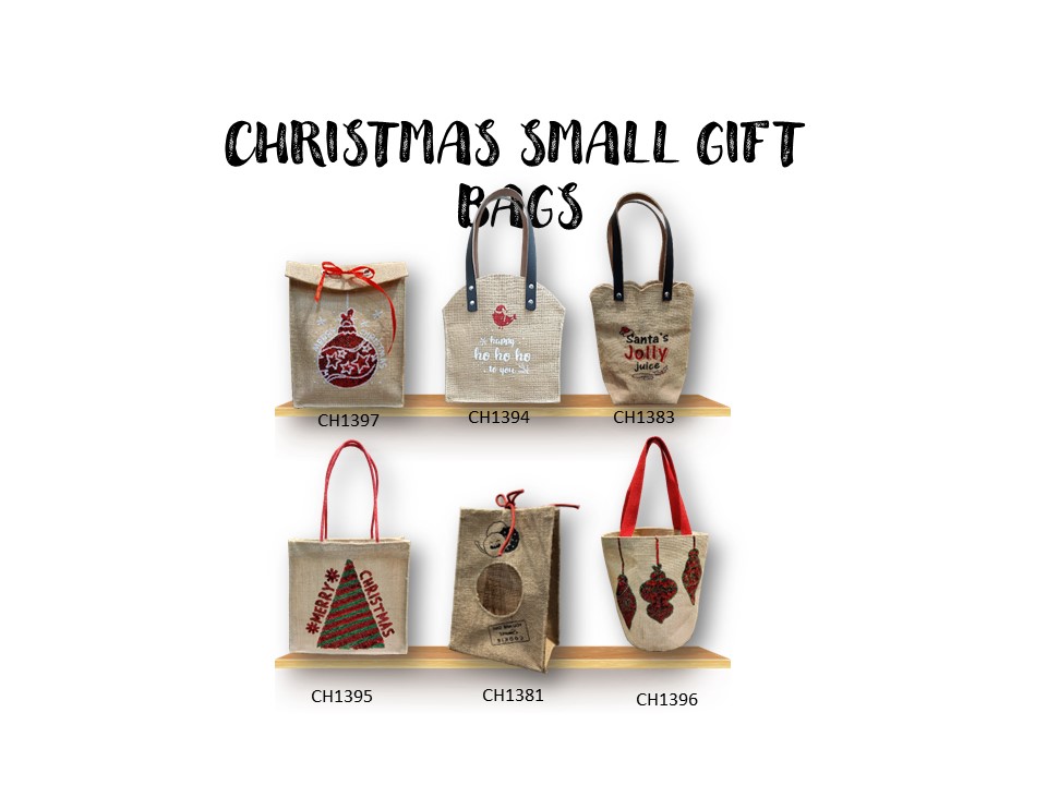 Christmas Small Gift Bags with sequins & glitter work on jute fabric