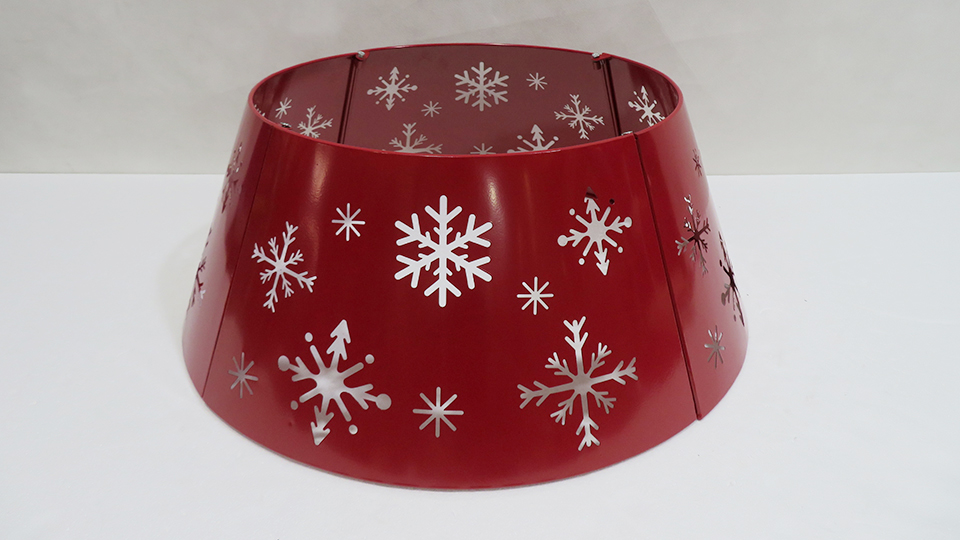 Complete your home decor this Christmas with the Christmas Snowflake Cutout Metal Tree Collar. This tree collar is made from metal and sports a white shade. Cutouts shaped like snowflakes make it beautiful.