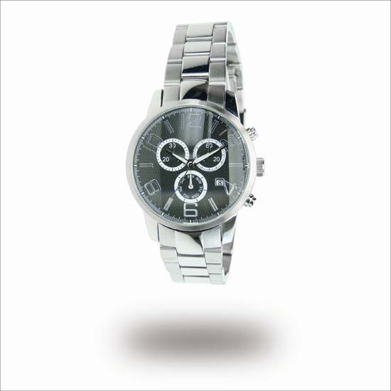The chrono gents' watch attracts you with its polished silvery exterior. It comes with a big round dial with sub-dials and a date display for utility. The dial is covered by mineral curved glass with sapphire plating.