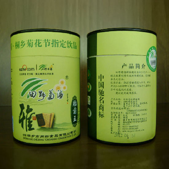 This outlined box of chrysanthemum buds tea flaunts an appealing aromatic flavor. Chrysanthemum tea provides a good source of vitamins A and B, choline, amino acids and other nutriments, and contains zero calorie. This chrysanthemum bud tea is best to be served with hot water.