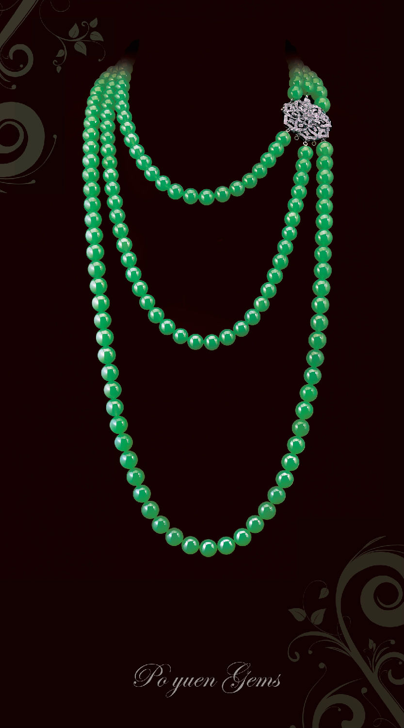 Chrysoprase necklace chain set in 18k gold and diamond clasp.