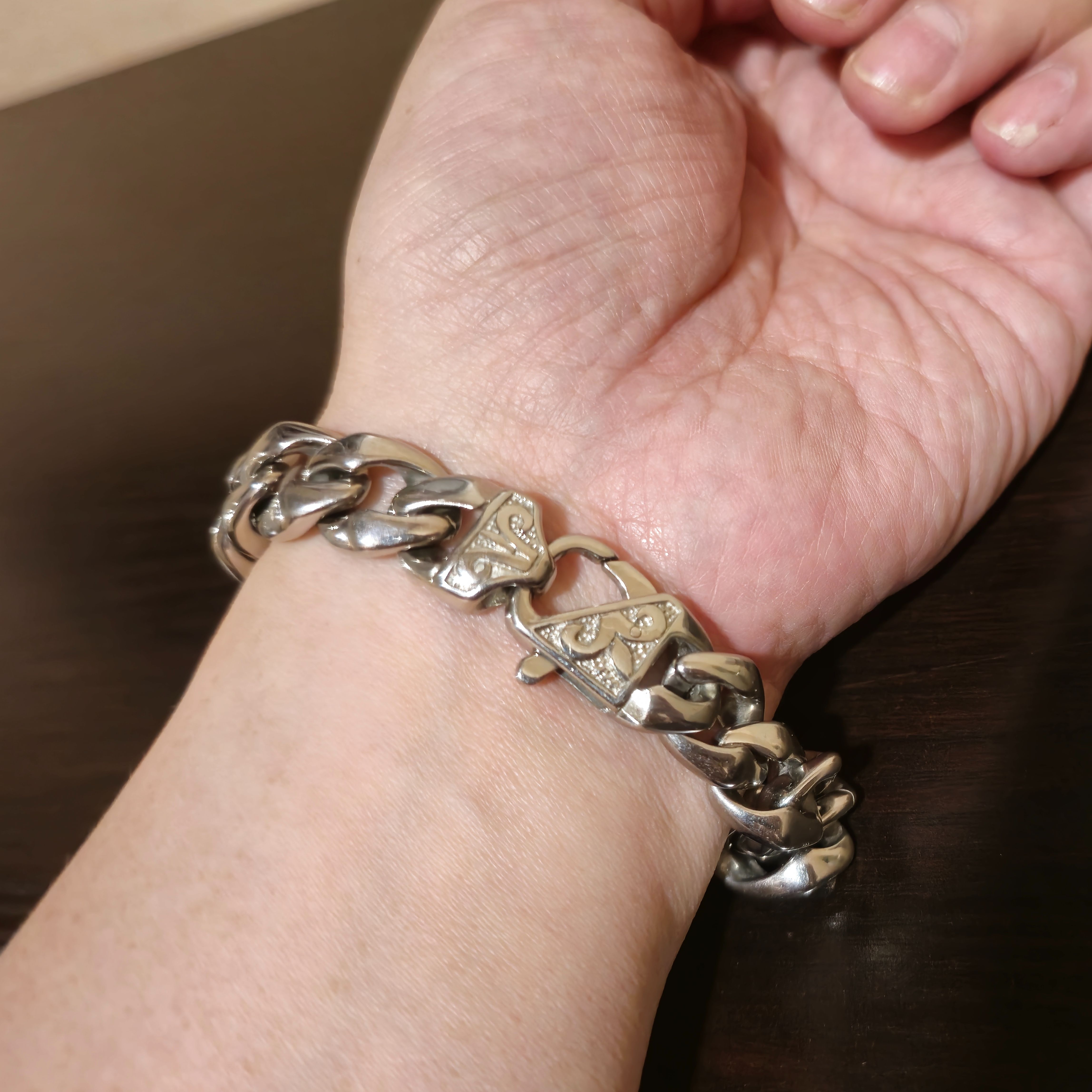 there are 3 styles clasps for this chunky bracelets. it's polished finished and non-allergic to human skin. long lasting.