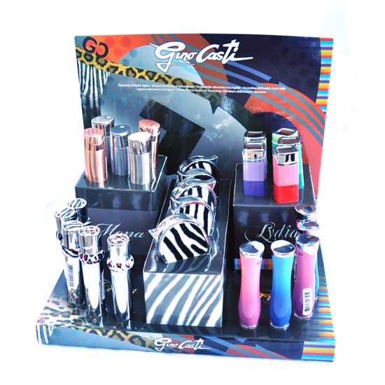 As shown here is a collection of cigarette lighters with fashionable design. The lighters feature a polished metal shell with a mirror finish. Colorful patterns are added on the shell for cool style.