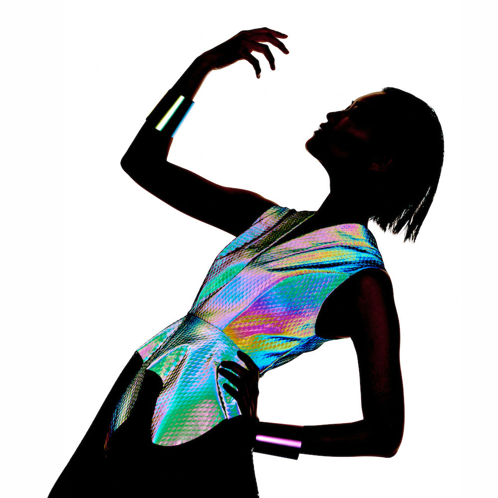 With the use of iridescent reflective print on net.