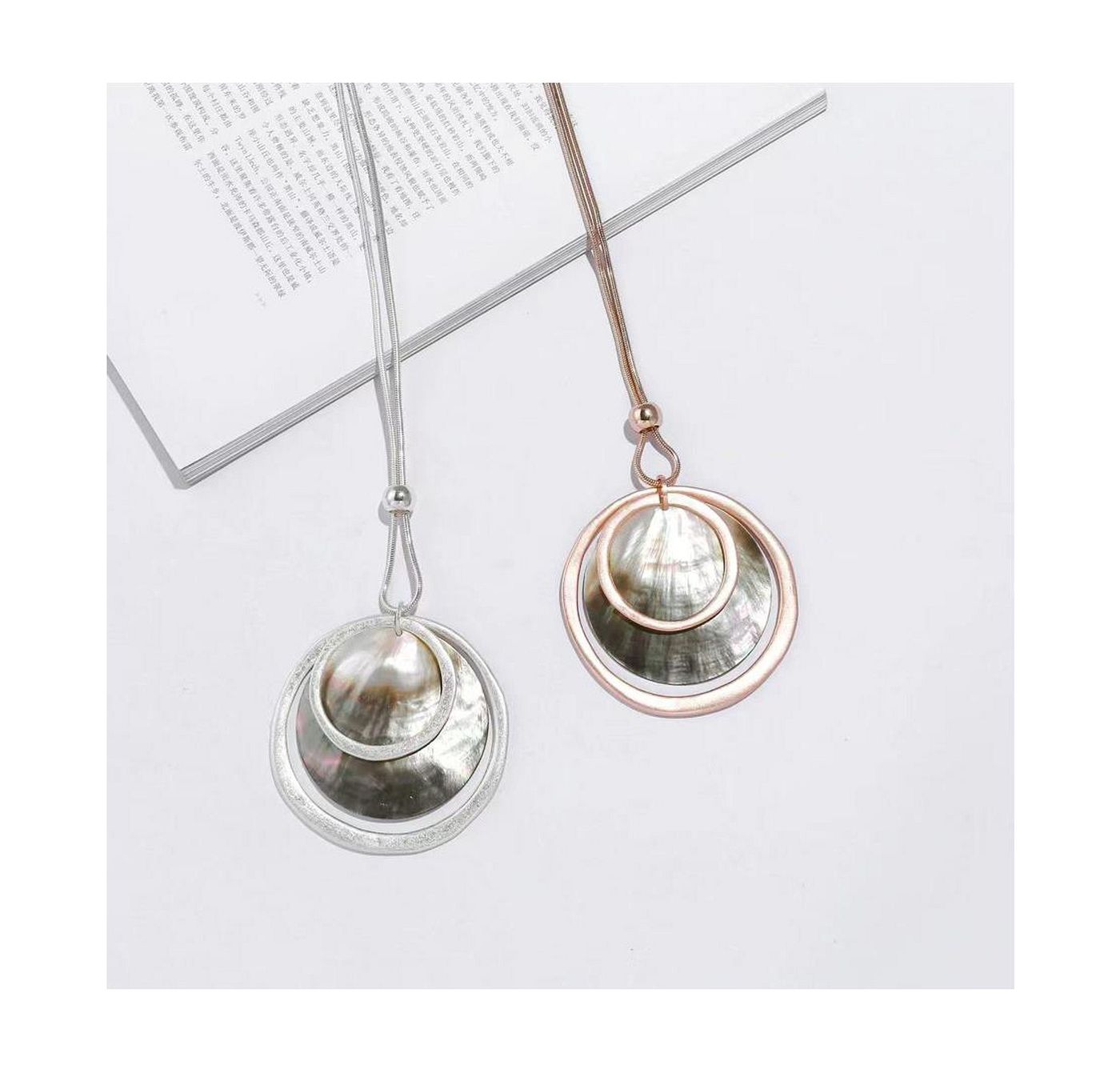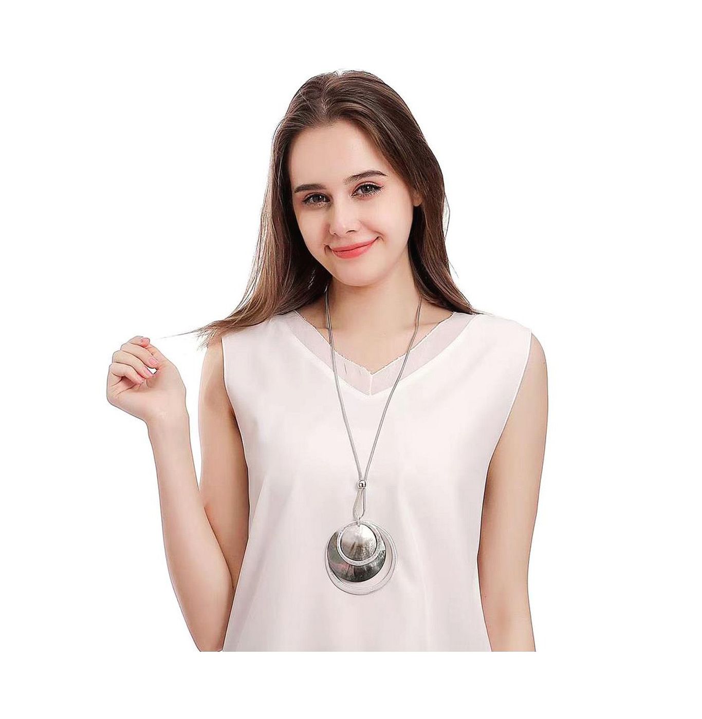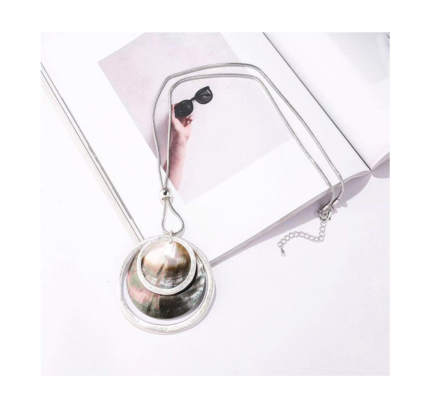 As shown is a high-fashion circle pendant alloy parts jewelry steel necklace.