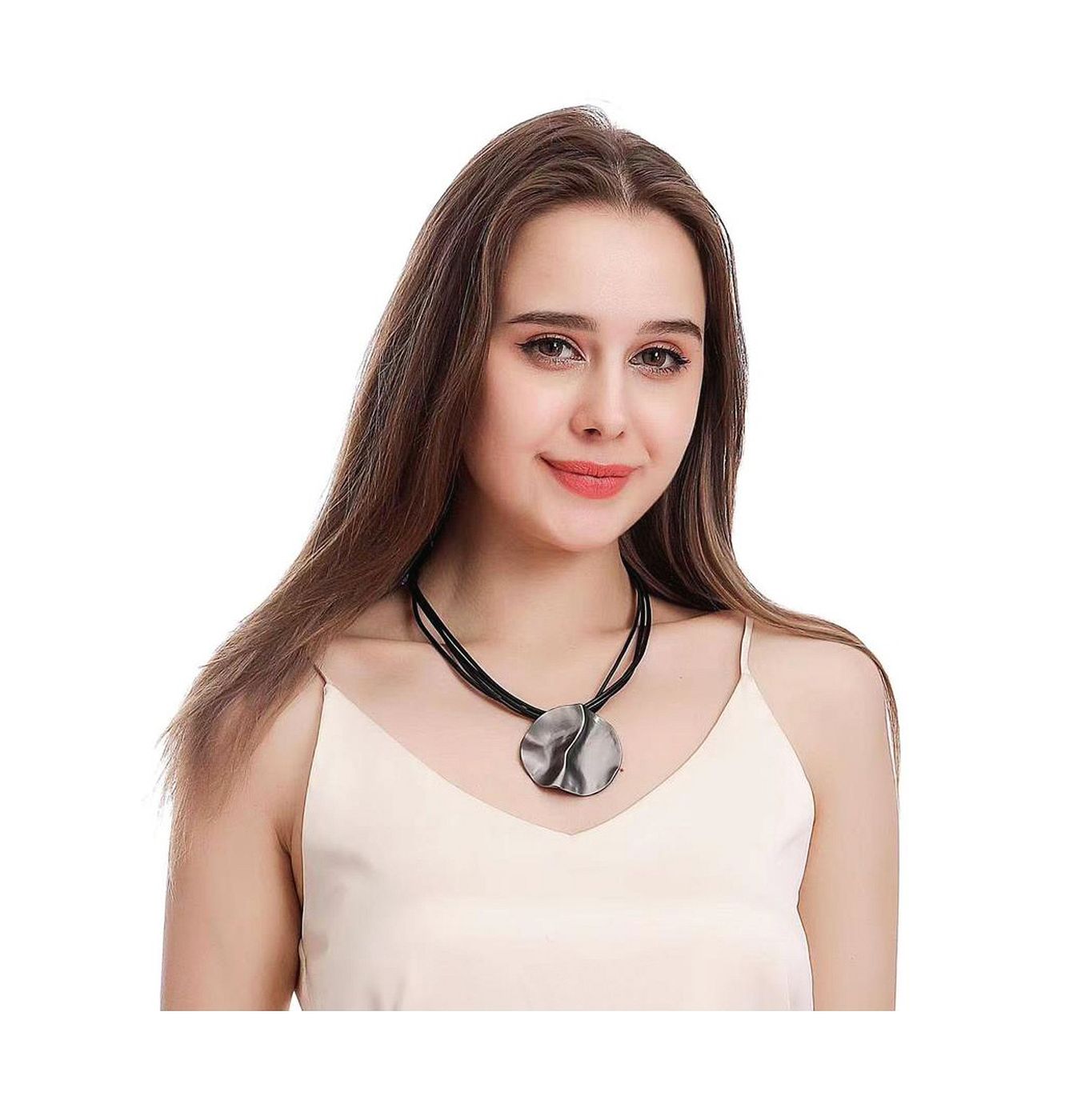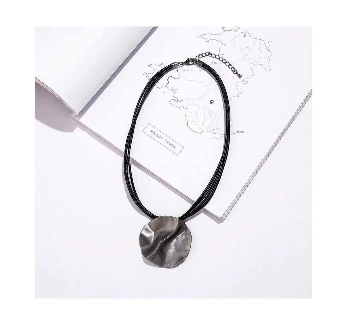 As shown is a high-fashion circle pendant alloy parts jewelry steel necklace.