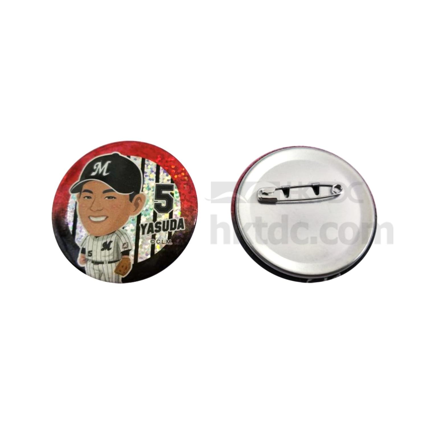 Circle Shape Button Tin Badge with a simple safety pin