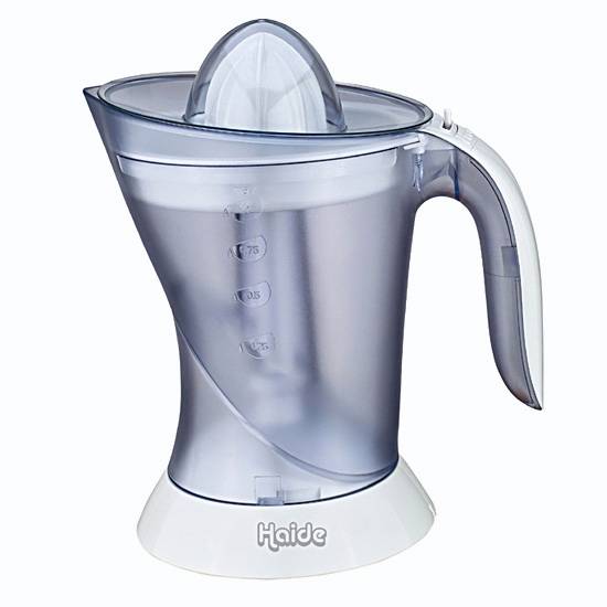 This citrus juicer makes fresh juices quickly and cleanly. The see-through container lets you know how full the juicer is. Enjoy fresh-squeezed juices everyday with this functional device.