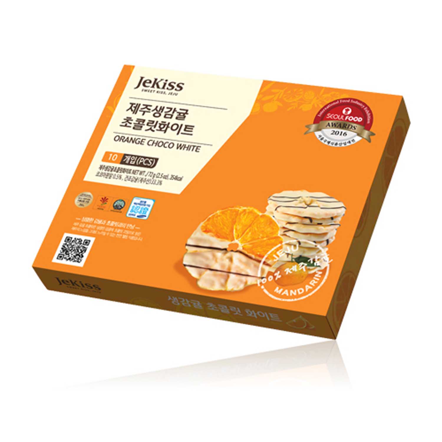 Premium Natural Chocolate 100% dehydrated fresh orange and coated with quality chocolate Applied 100% dehydrated fresh orange and coated with quality chocolate Jeju Fresh Orange Chocolate White! Chocolate created from the world natural heritage, Jeju Island JeKiss delivers you the natural abundance as it comes.