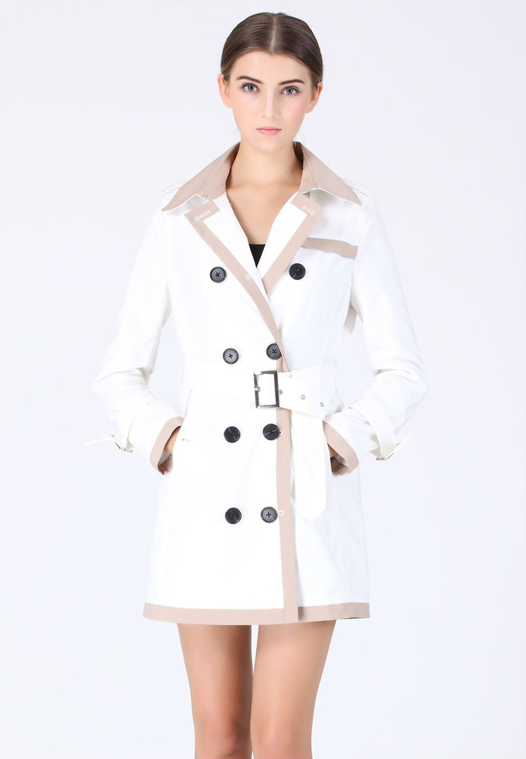 Yet another of our favorite color contrasting design, this classic contrast trench coat is meticulously tailored. This coat is finished with two side buttoned pockets, shoulder epaulettes, storm flap, removable buckle belt, and adjustable cuff straps.