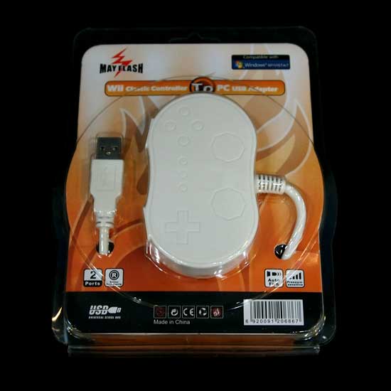 This Wii classic controller adapter allows you to play Wii games on the PC via a Wii controller. The two USB ports enable two players to play at the same time. The versatile controller is compatible with the Windows 98, ME, 2000, XP and Vista systems.