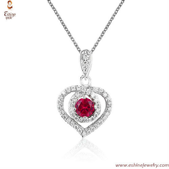 Classic Love Heart Pendant With Round Ruby & Clear Cz By Brass Material From China Jewelry Factory