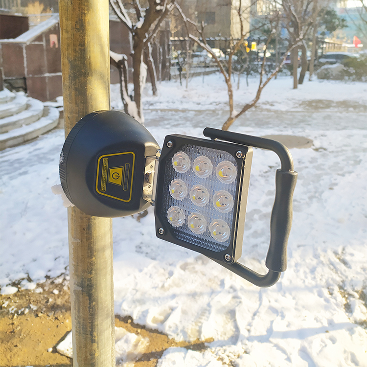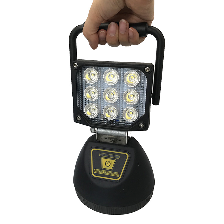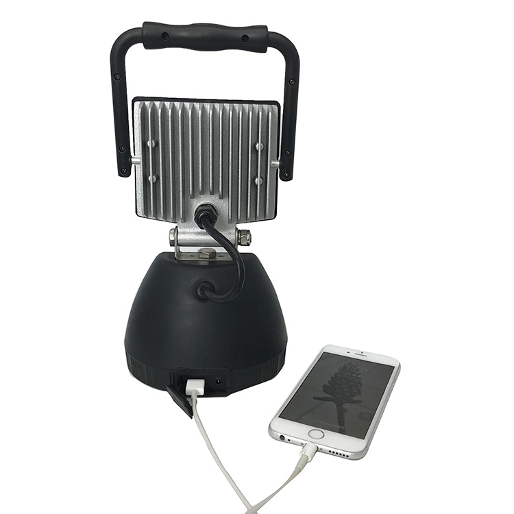 IP64 dustproof waterproof rechargeable LED work light for rainy outdoors.