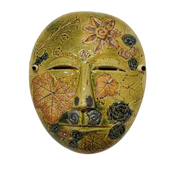 This tasteful clay pottery features the design of a mask. The pottery is finely crafted with flower and leave motifs for added appeal. Update your home decor with this fantastic mask pottery.
